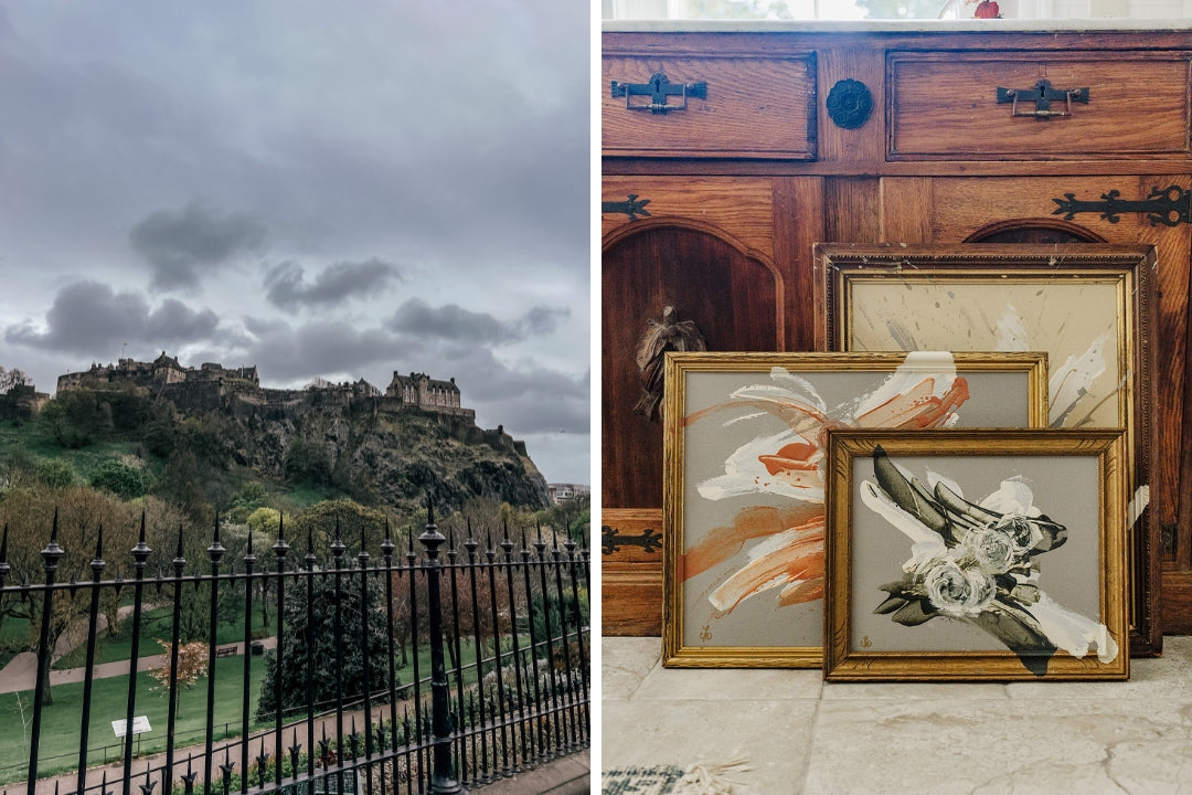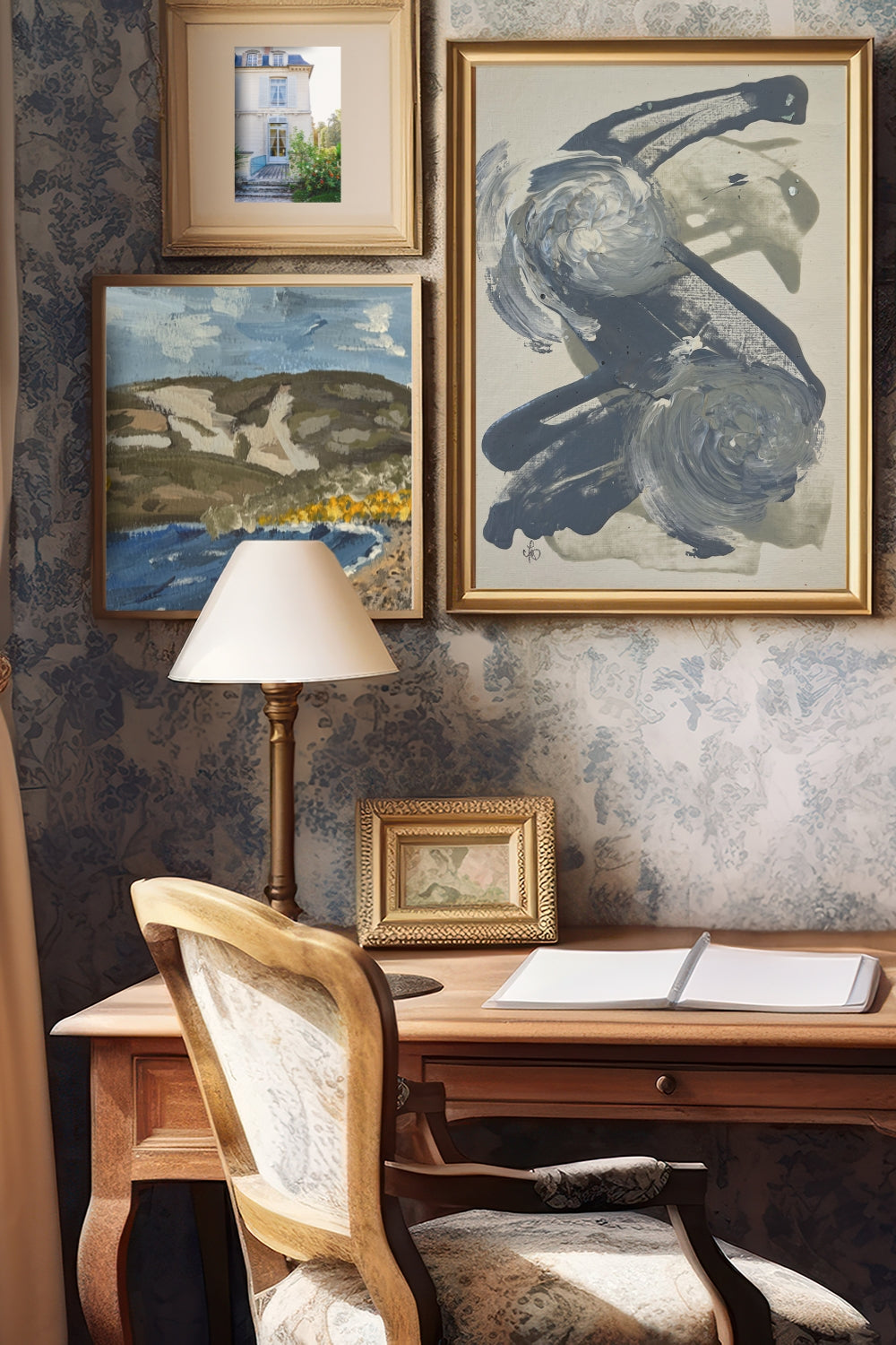 These original color studies are the behind-the-scenes heart of my collection with Elements of Style. Before the final designs were chosen, I brought these eight abstract works—each one painted by hand—into in-person meetings with Erin Gates and her team. Together, we used them to guide the color palette, tone, and direction of what became a bestselling collaboration.