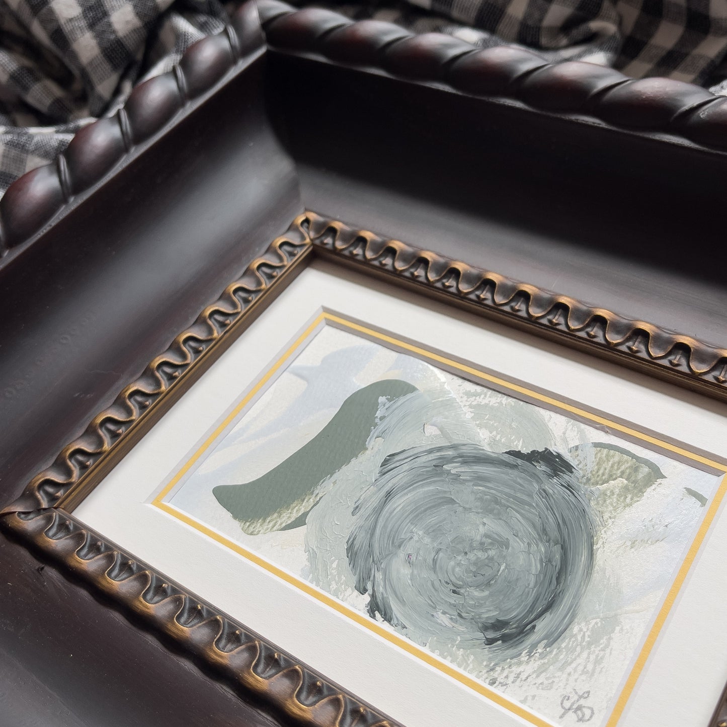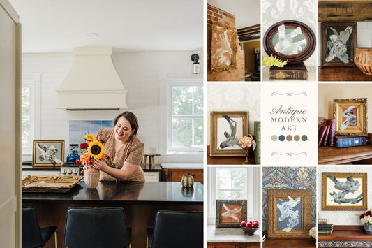 These pieces blend contemporary abstract painting styles with antique frames full of...
