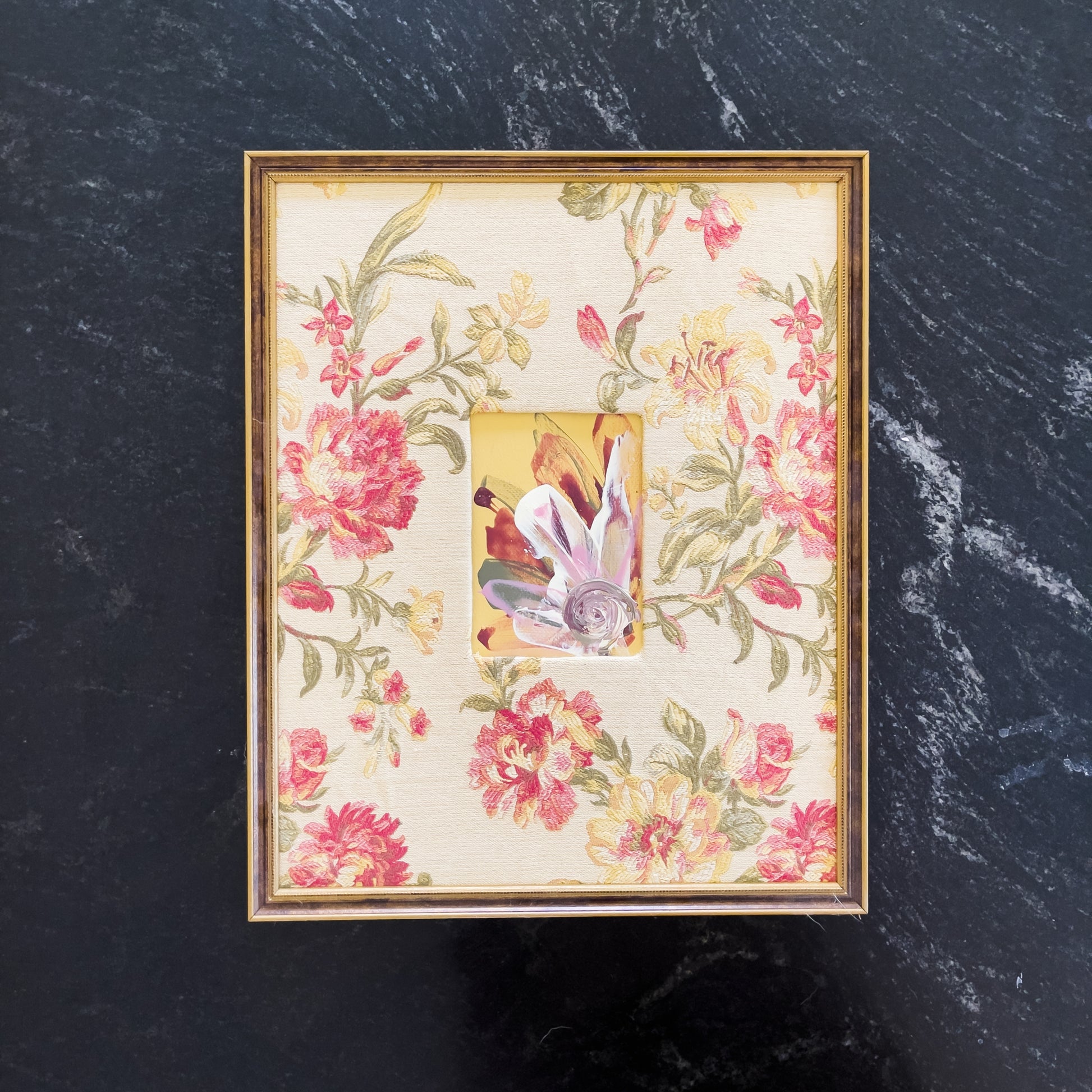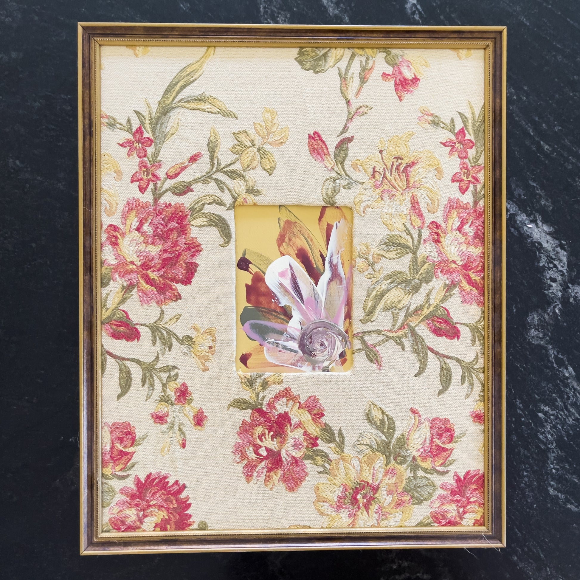Original Artwork on Paper | Oversized Antique Brocade Fabric Mat | 5 x 7 inches, 16 x 20 inches overall