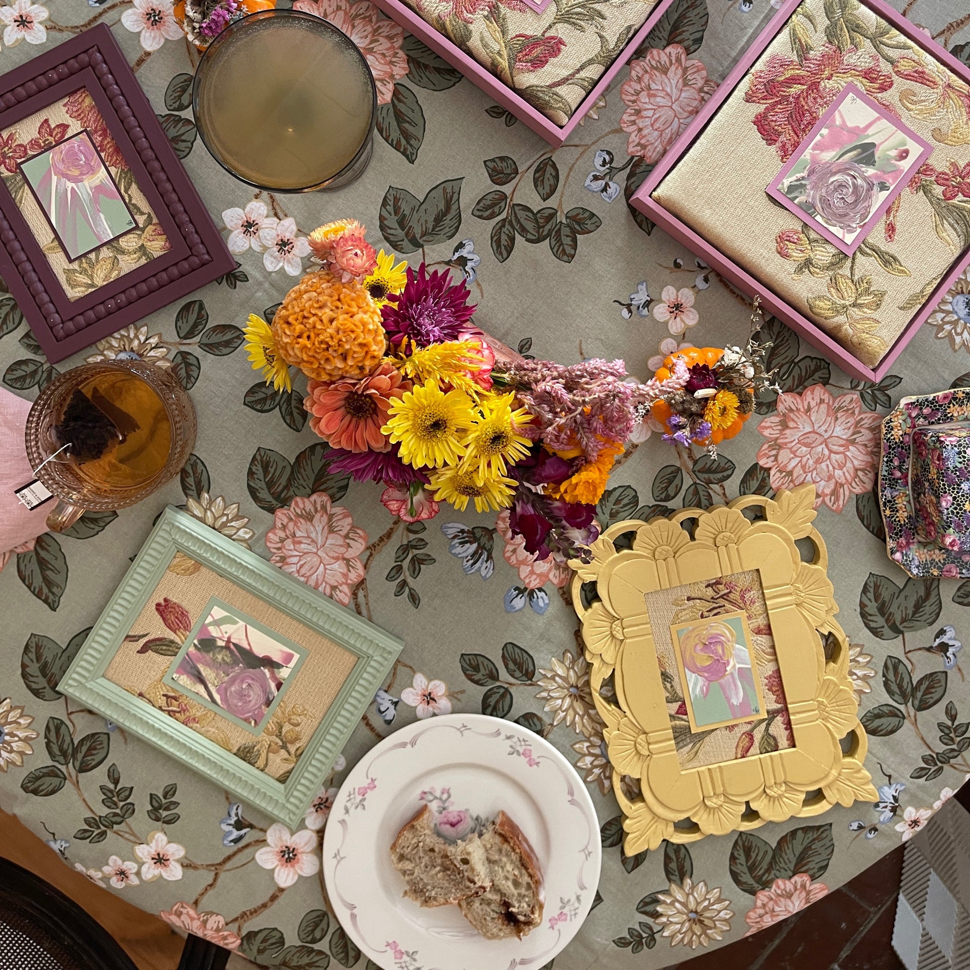 The Bright Fall Collection is inspired by the timeless elegance of Boston’s Beacon Hill in autumn, where crisp air and golden light spill over cobblestone streets, historic brick townhomes, and iron-gated gardens. Luxurious textures of antique brocade meet the invigorating palette of a New England fall—deep merlot, dusty pink, soft cream, mustard gold, sage, and pistachio—capturing the brisk-yet-cozy spirit of the season. From vintage prints to original paintings in antique frames, each piece embodies the romance of history layered with the vitality of autumn, inviting warmth, richness, and a sense of collected tradition into the home.